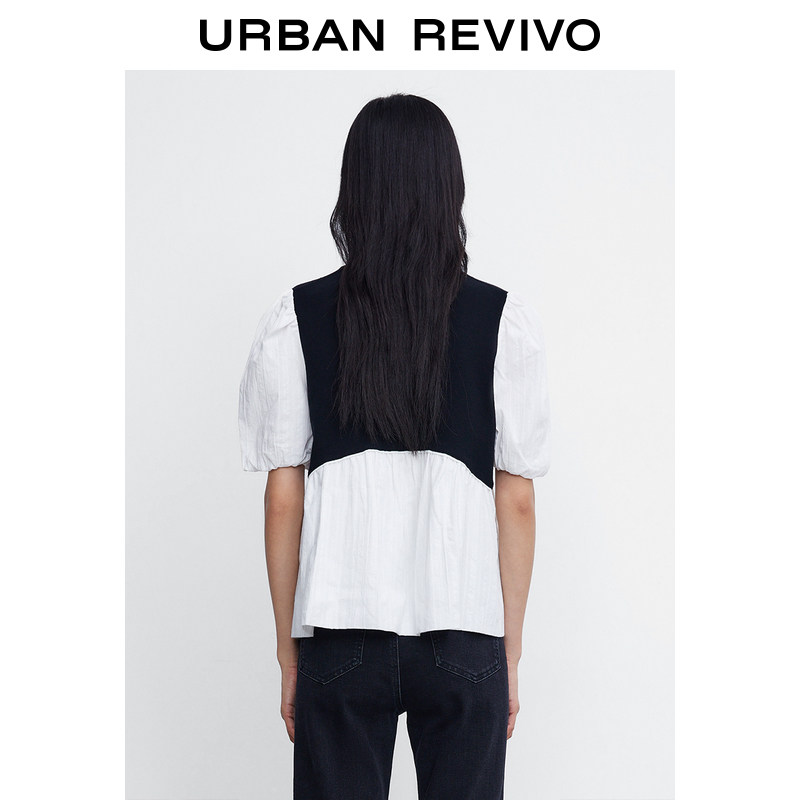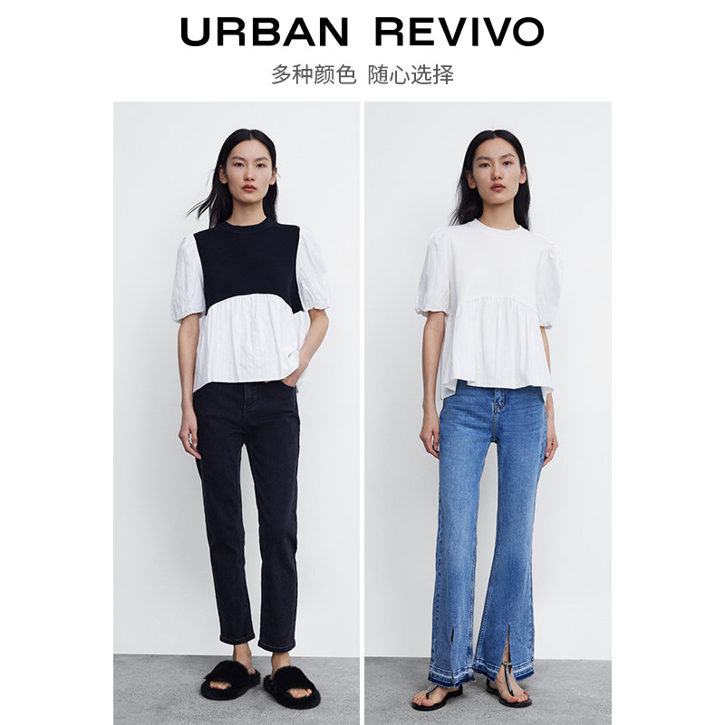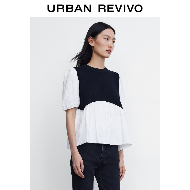 UR2022 Summer new pint woman dress cute sweet and beautiful splicing sleeve head short sleeve knit T-shirt WL08R9BN2001