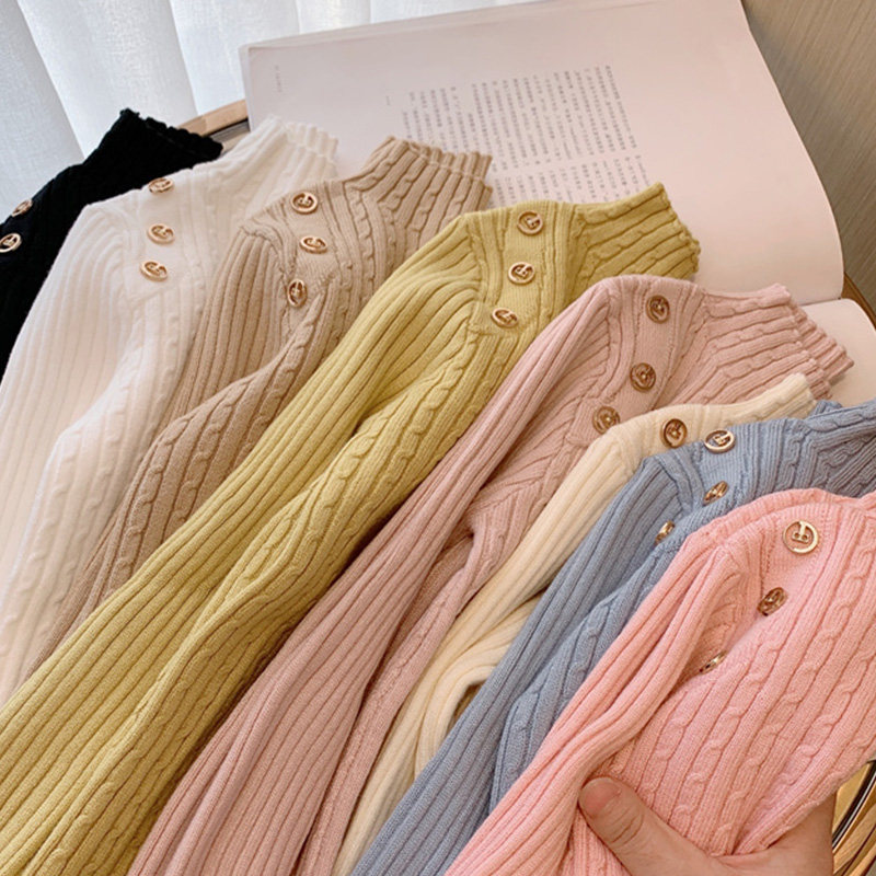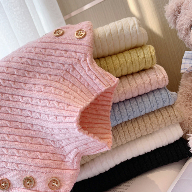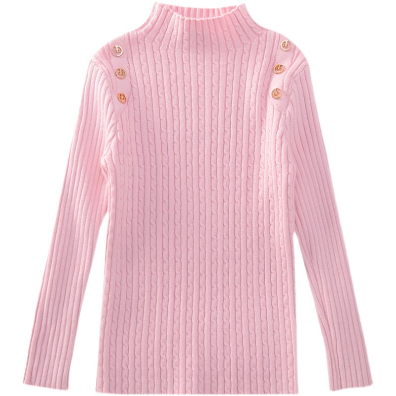 Girls beat sweater in autumn and winter 2022 new baby children in high - collar, pure - colored tops knitted