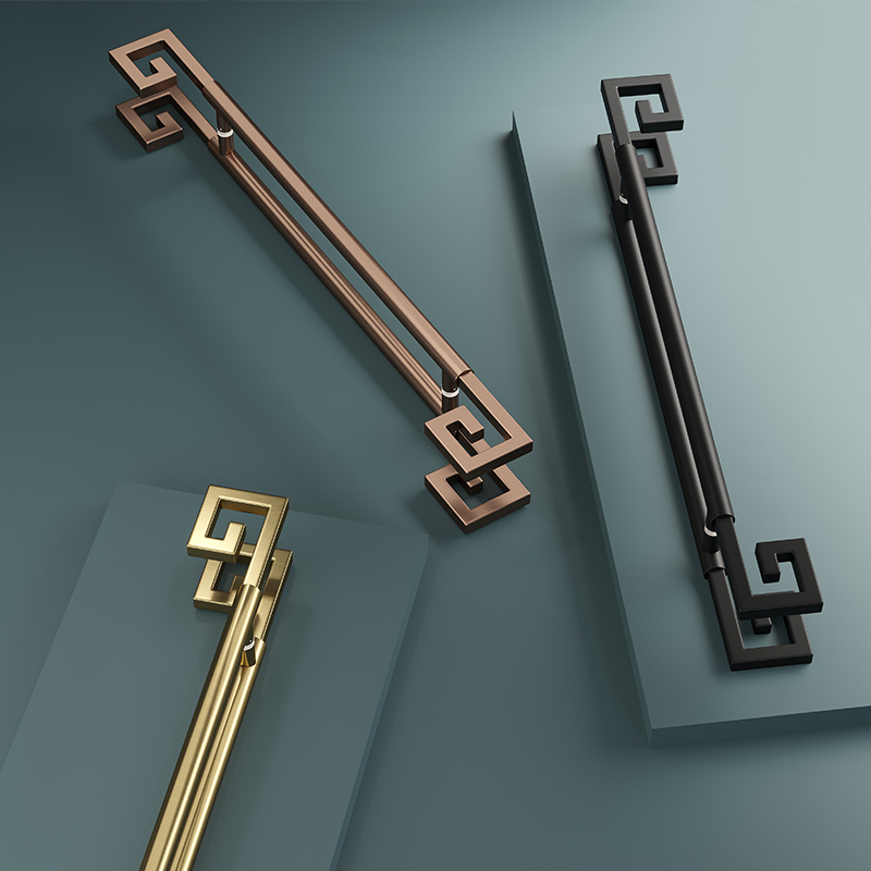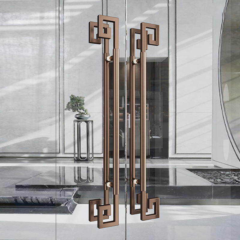 New Chinese style rose gold glass door handle stainless steel golden big handle hotel box black solid wood door handle