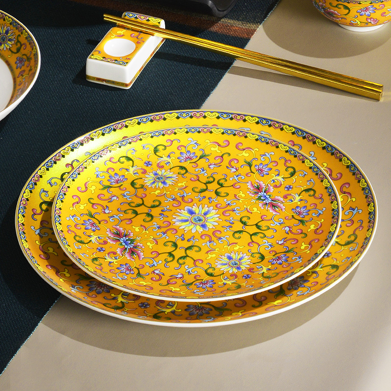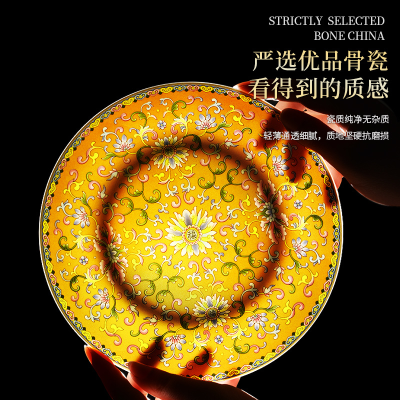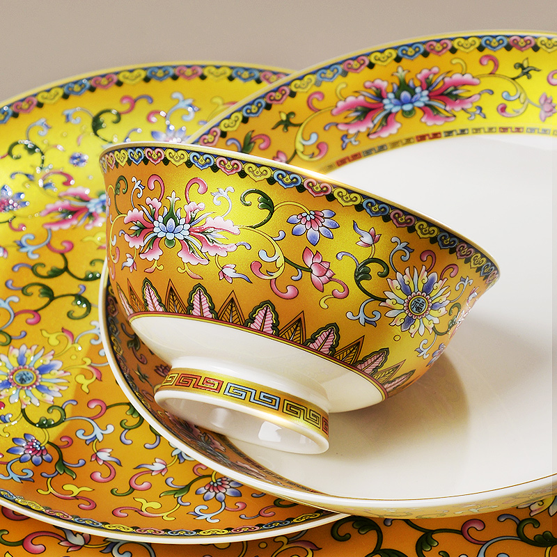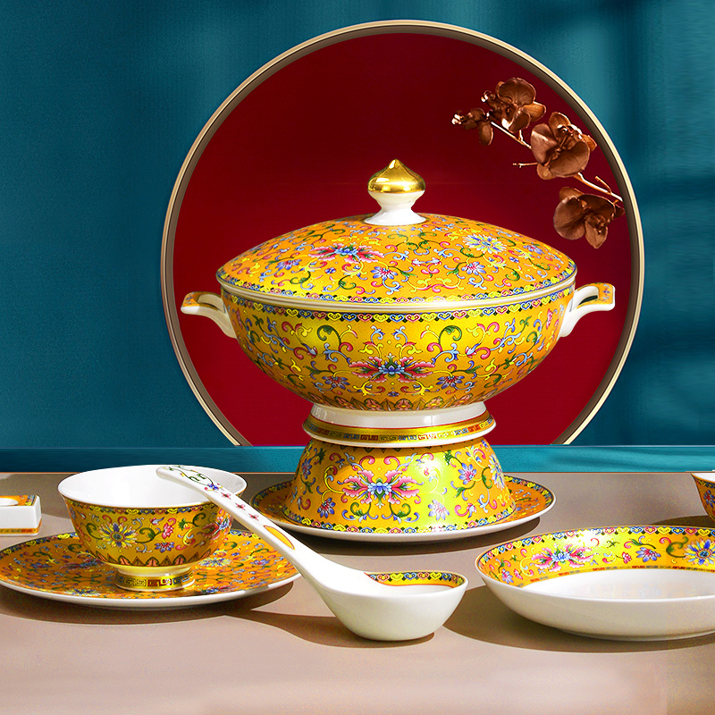 Jingdezhen Bone China Porcelain Cutlery Sets of Bowl Trays National Tide Enamel Color Joe Transfer Gift Bowl dishes Suits Home Light Extravagant Bowls and chopsticks