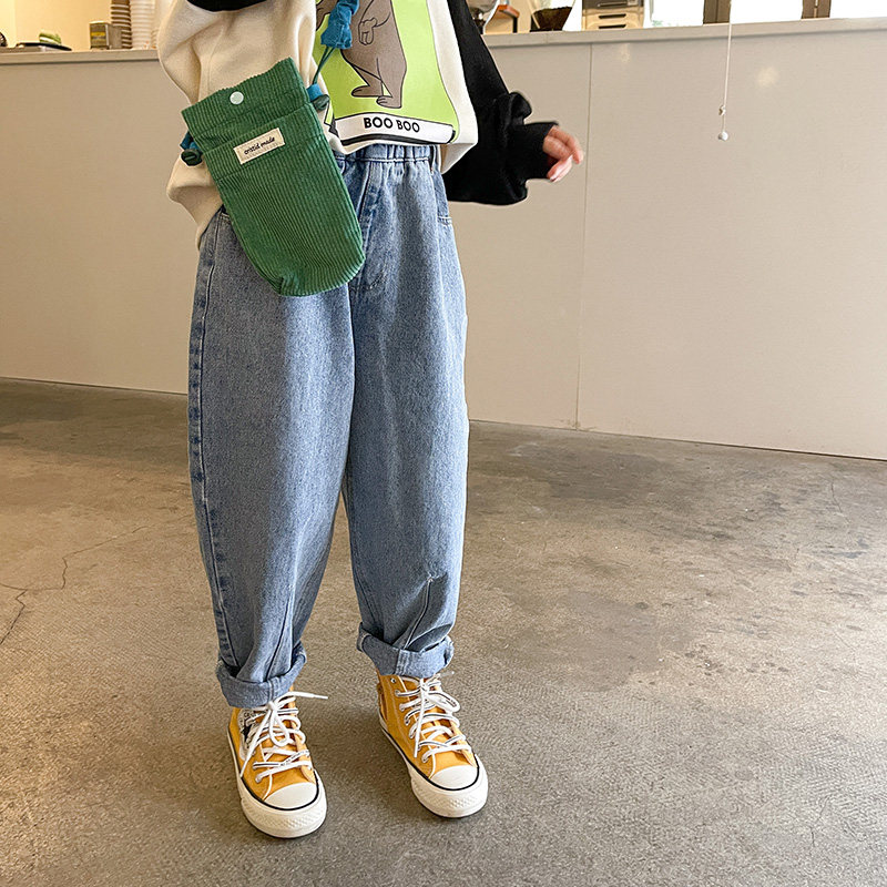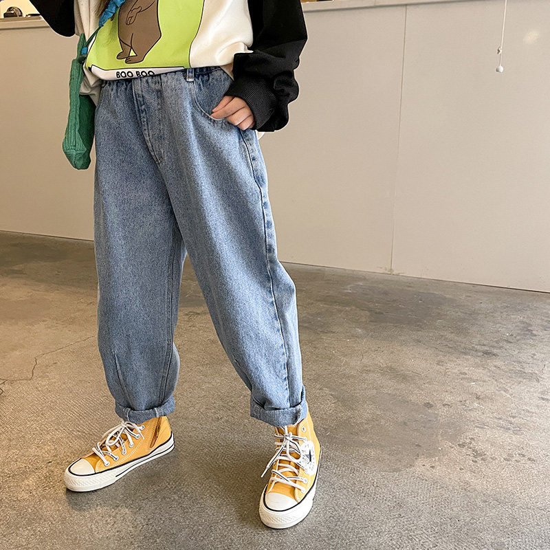 Girl Jeans 2022 Spring Autumn New CUHK Boy Old Daddy Pants Loose Children Long Pants 100 Hitch Pants Summer