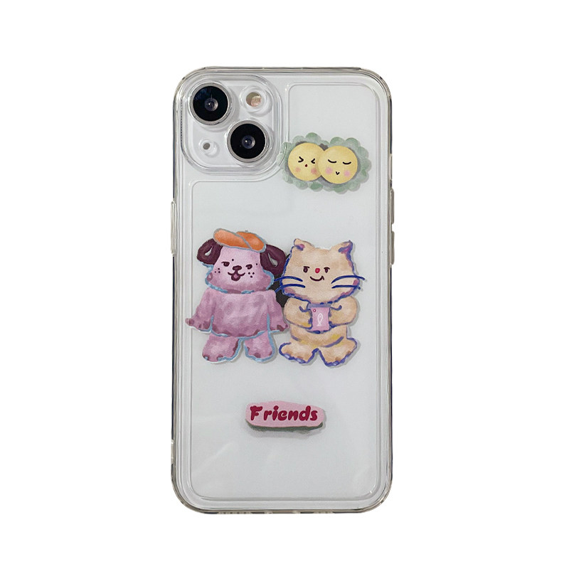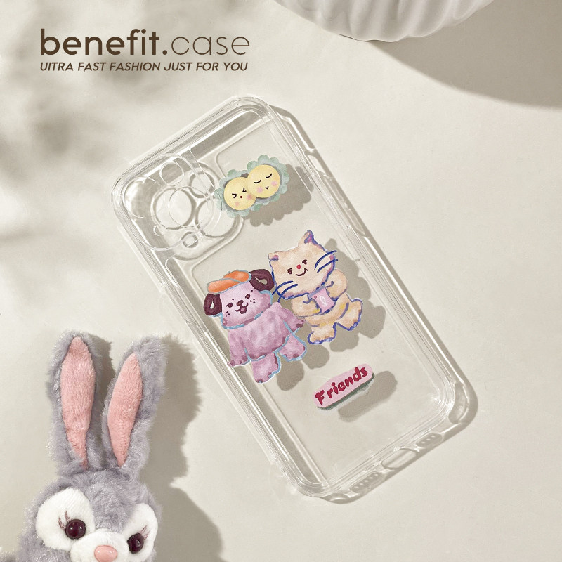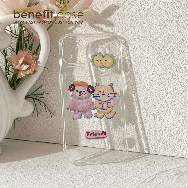 Benefit Japan-ROK cartoon oil painting cat dog applies Apple 13promax mobile phone protection shell original iphone12mini cartoon xsmax teenage girl xr transparent 8
