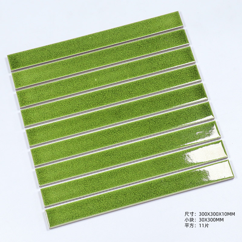 Simple modern ceramic ice cracked small strip mosaic tile kitchen powder room dining room bar interior wall brick dark green