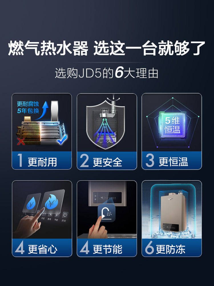 Smith 13-liter gas water heater stainless steel heat exchanger more durable constant temperature household natural gas 5 series 16L