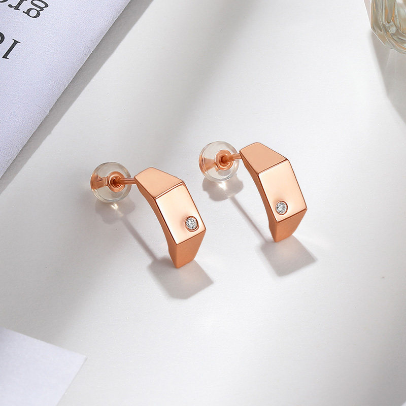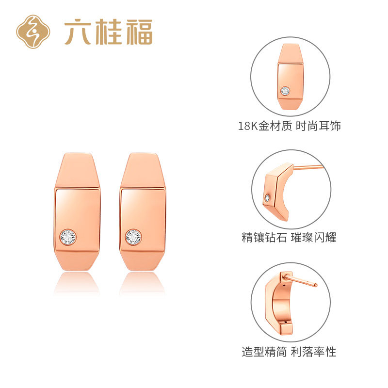 Six Gui Fu jewelry 18k gold gold diamond ear nails personality of the moon earrings female official