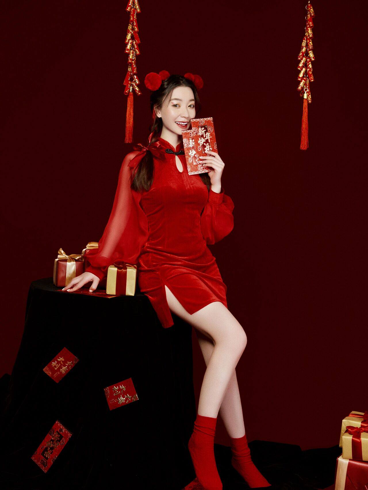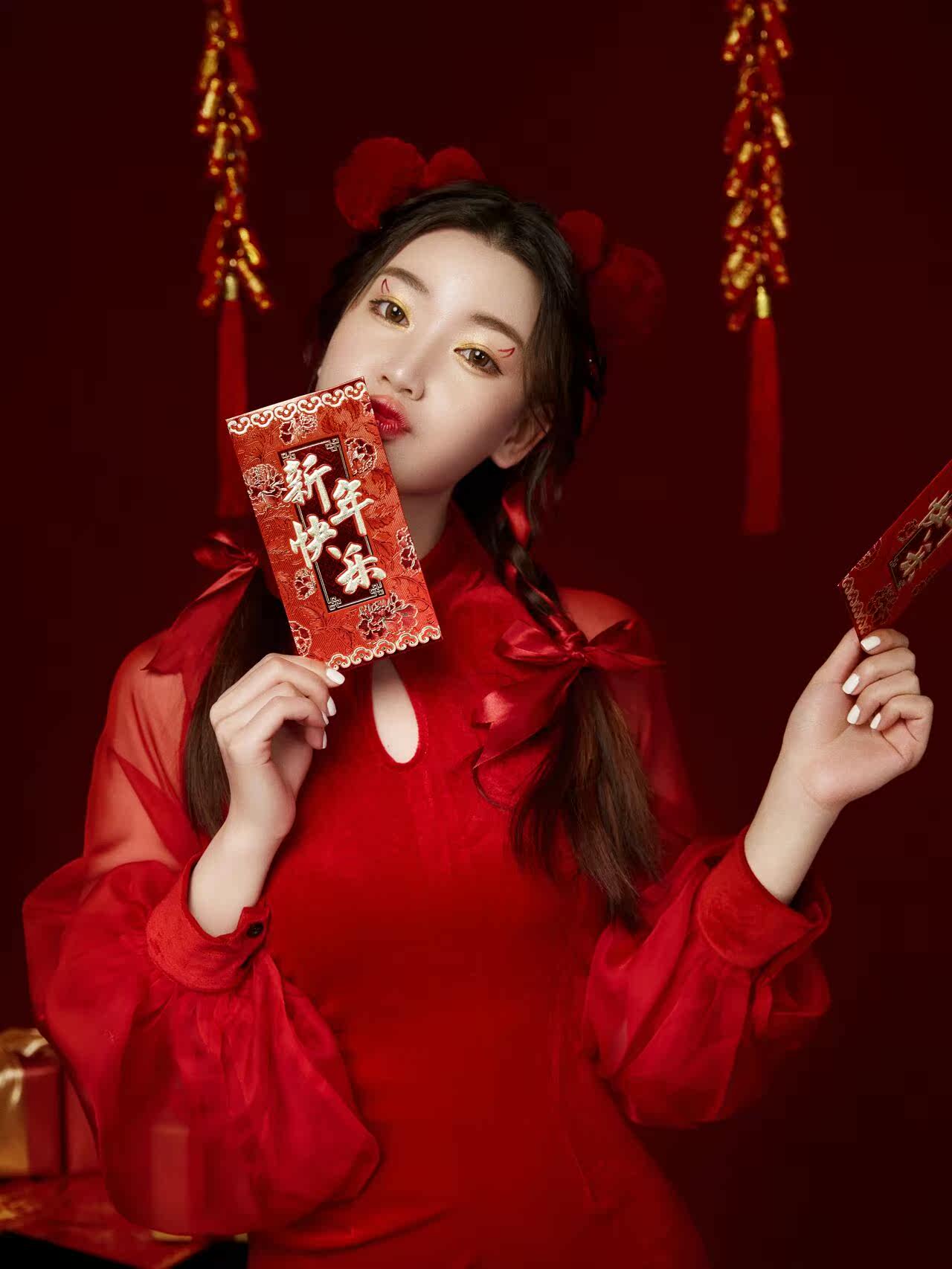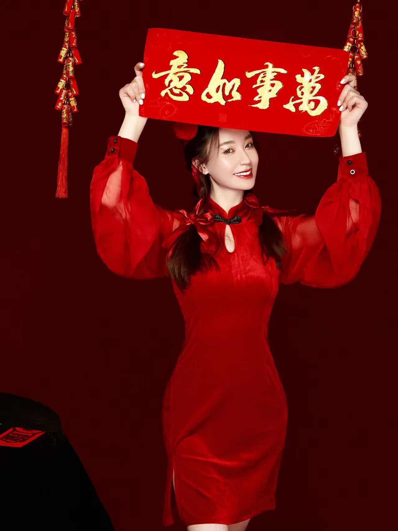 Photo studio photo clothing New Year theme red festive Chinese style cheongsam art photo Spring Festival photo photography clothing