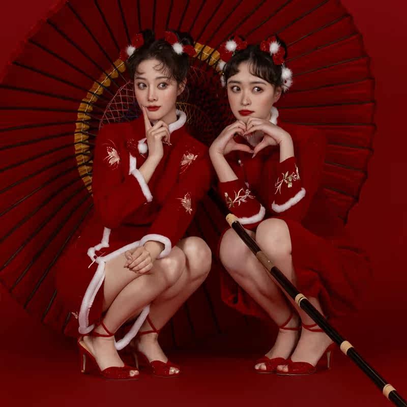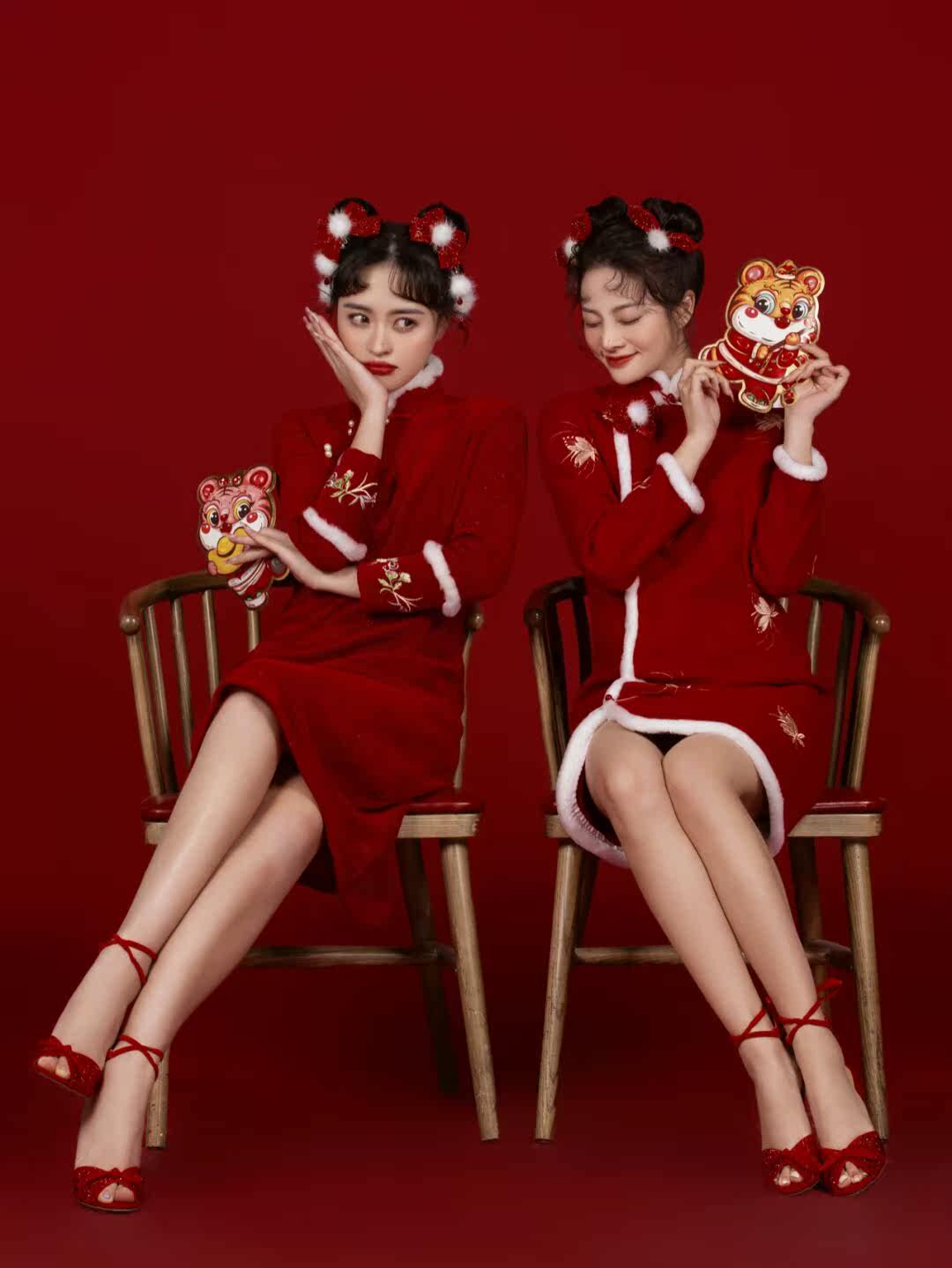 Photo studio New Year clothes girlfriends cheongsam retro country tide sisters sweet red festive Chinese style cheongsam photo clothing