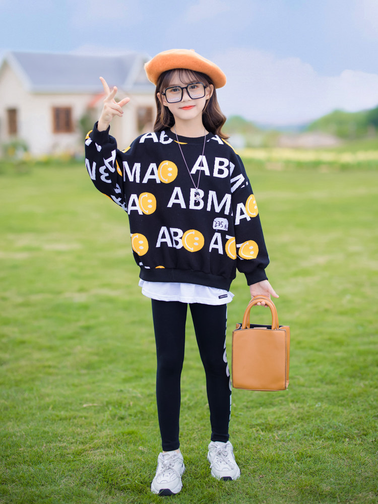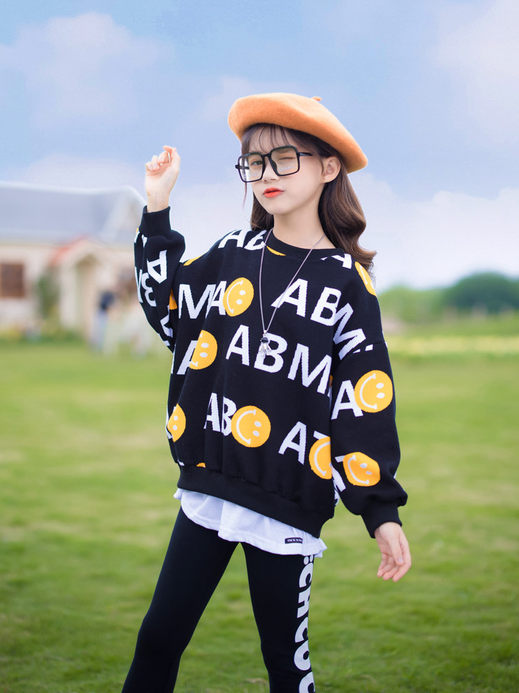 Girls' fashion foreign style sweater suit spring 2022 new middle and big children's net red children's casual top two-piece set