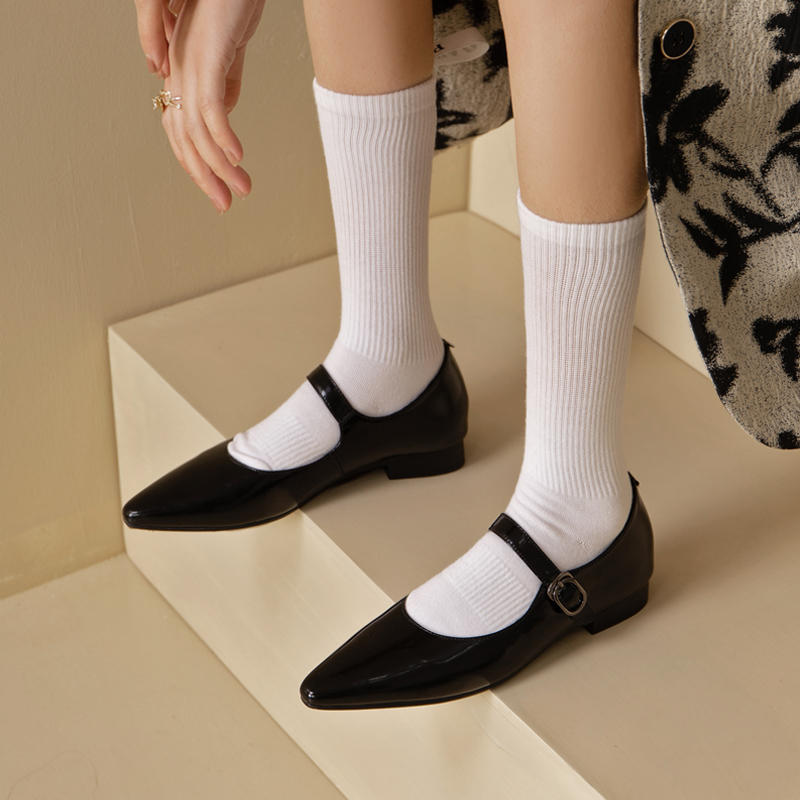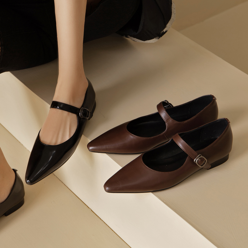 Elegant ELEGANT OCEAN GAS GENUINE LEATHER MARY PRECIOUS LEATHER SHOES CHILDREN 2022 SPRING NEW POINTED LIGHT MOUTH FLAT FLAT SOLE SHOES
