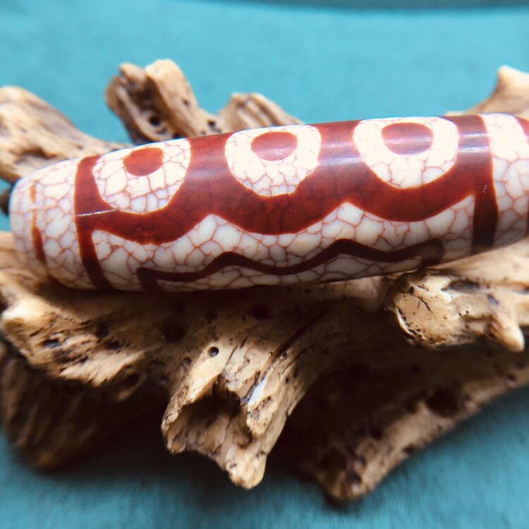 Tibet Backflow Blood Silk Dragon Pattern Big Fat Bead Five-Eyed Dzi Bead