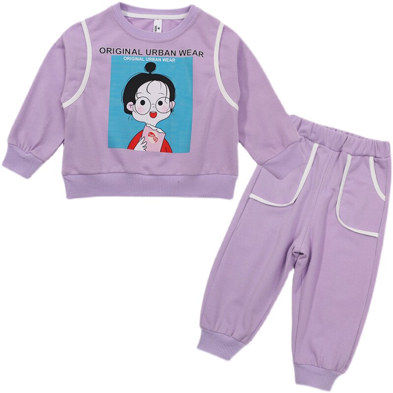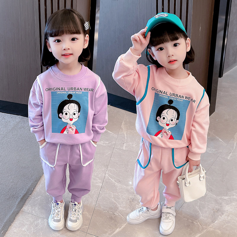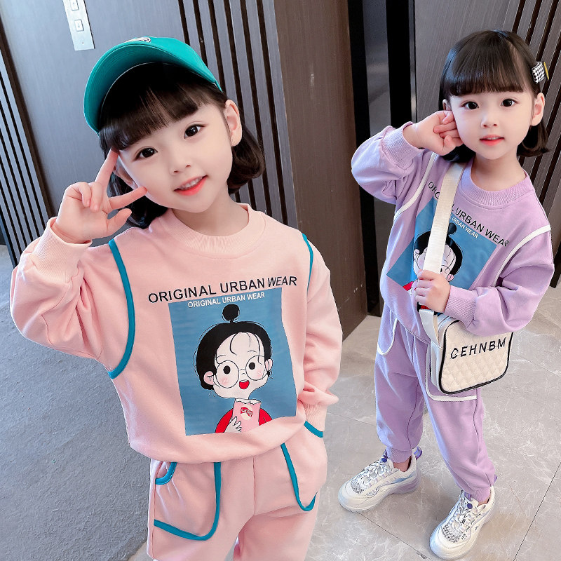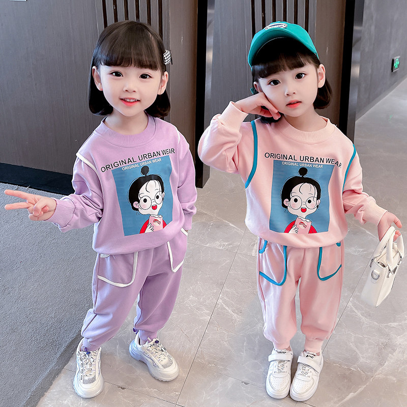 Girls' thick T-shirt suit 2022 spring clothing children's western style net red casual clothing girl baby new sportswear two-piece set