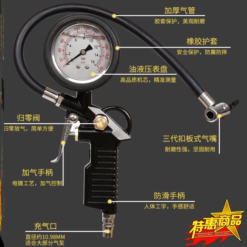 Tire Pressure Aerated Table Tire Inflation Valve Oil Pressure Gauge Gun car with inflatable Number of expats Gas Mouth Joint work