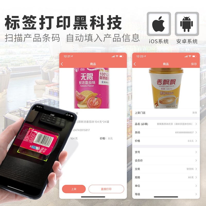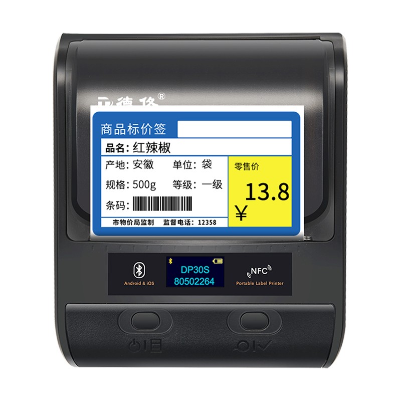 De Tong DP30S Supermarket Price Thermal Label Printer Handheld Bar Code Portable Bluetooth Adhesive Clothing Jewelry Tag Food Milk Tea Convenience Store Shelf Retail Price Printer
