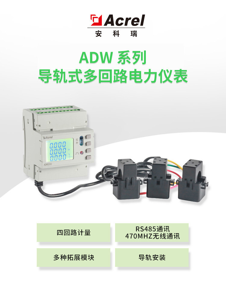 Ancori ADW200-D16 rail-type multi-loop power meter three-phase four-wire electric energy meter