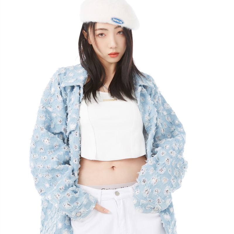 (SRYH online shop) Sense blue washed Hole Cowboy Jacket Men And Women Loose Jacket Spring Autumn
