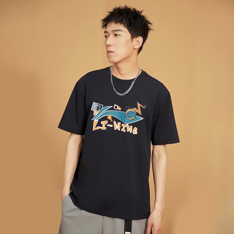 Li Ning short-sleeved T-shirt printing sports fashion men's round neck top spring casual knitted sportswear AHSS591