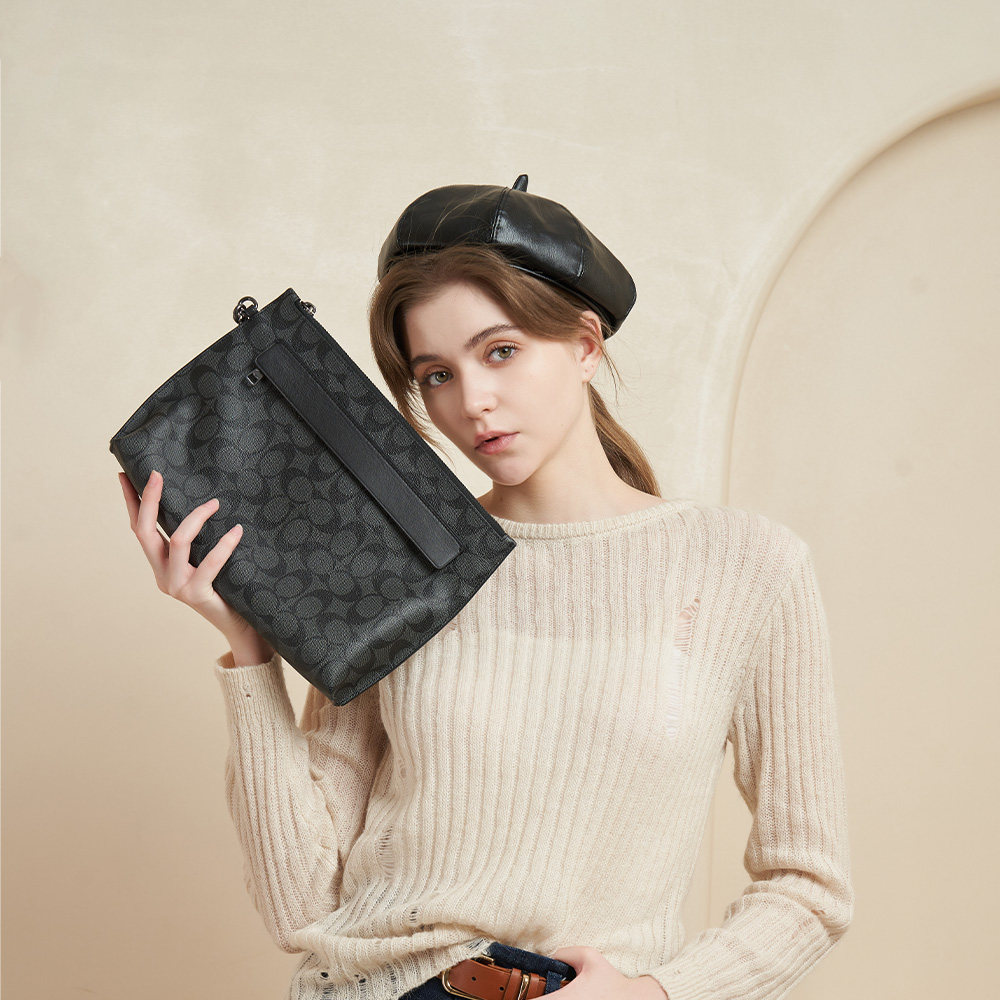 COACH Coco official men's fashion middle number black C tattooer bag PVC file bag hand grab bag 29508-Taobao