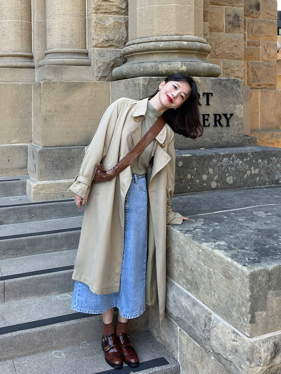 Windcoat Jacket Woman 2022 Spring Autumn Season New big coat in the long version Small chic Korean drama Design High level