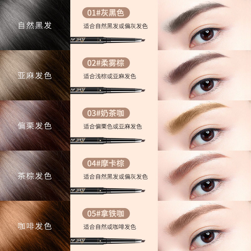 Love Love love in extremely fine brow Double head Automatic with brush waterproof not easy to faint beginners to draw eyebrows