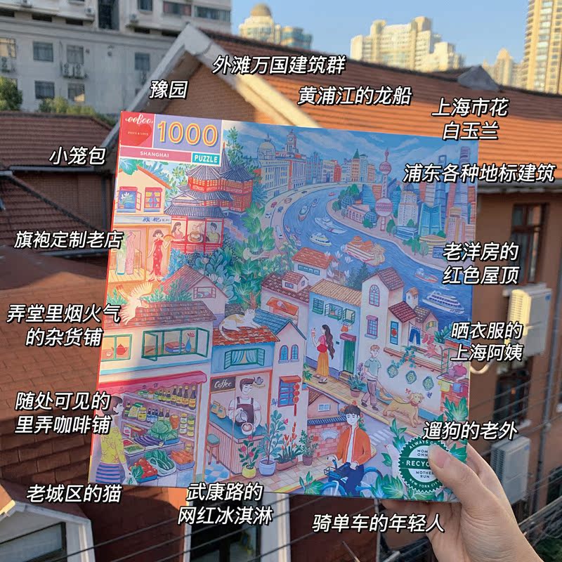 American eeBoo original illustration puzzle Shanghai morning 1000 pieces adult children's puzzle casual toy decoration
