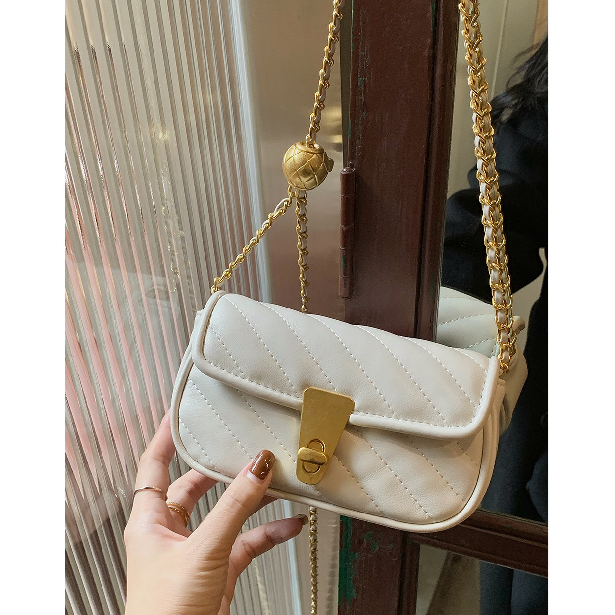 Autumn lady bag niche design small fragrance rhombus chain bag female 2021 new small gold ball shoulder messenger bag