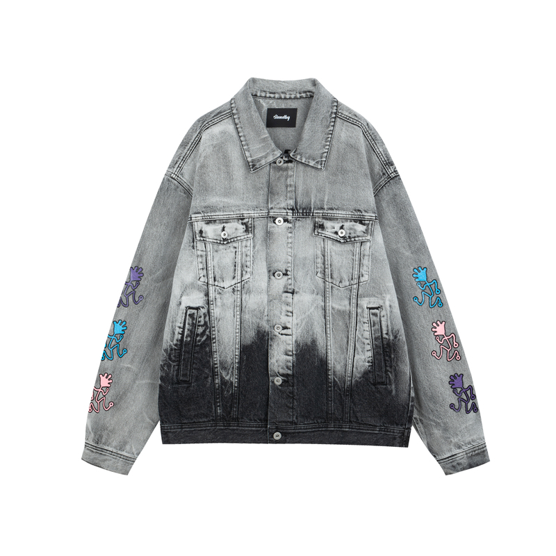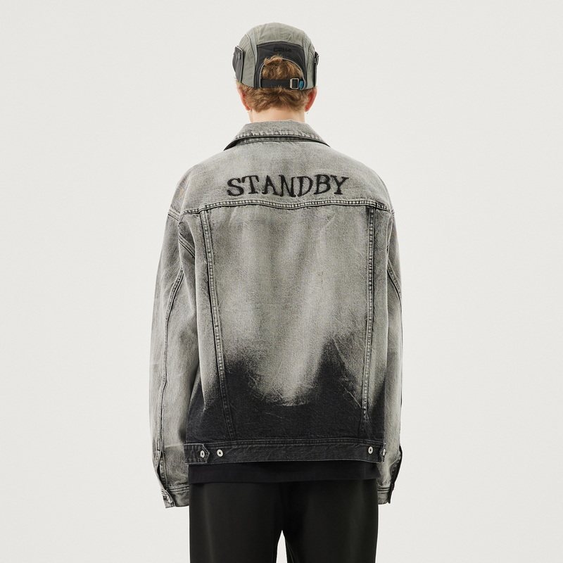 (INXX) STAND BY trendy denim jacket vintage loose trend high street print distressed cropped coat