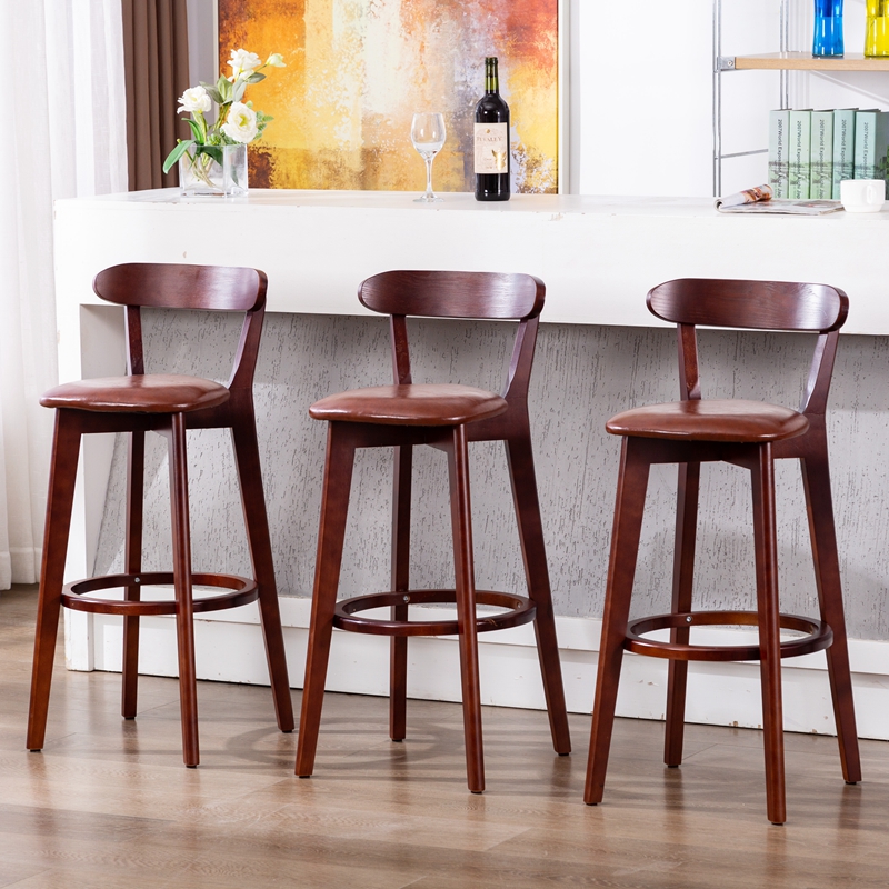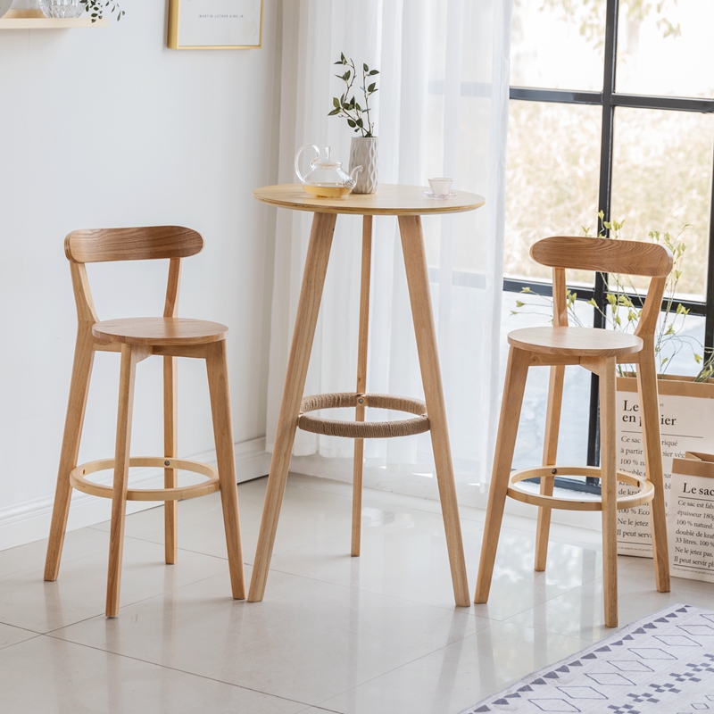 Bar chair solid wood back home Nordic American high bar stool modern minimalist milk tea shop island bar chair