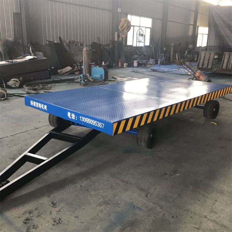 Plant area stacking high machine traction ultra-low flat cart Warehousing carrying four wheels steering weekly solid tire flatbed truck