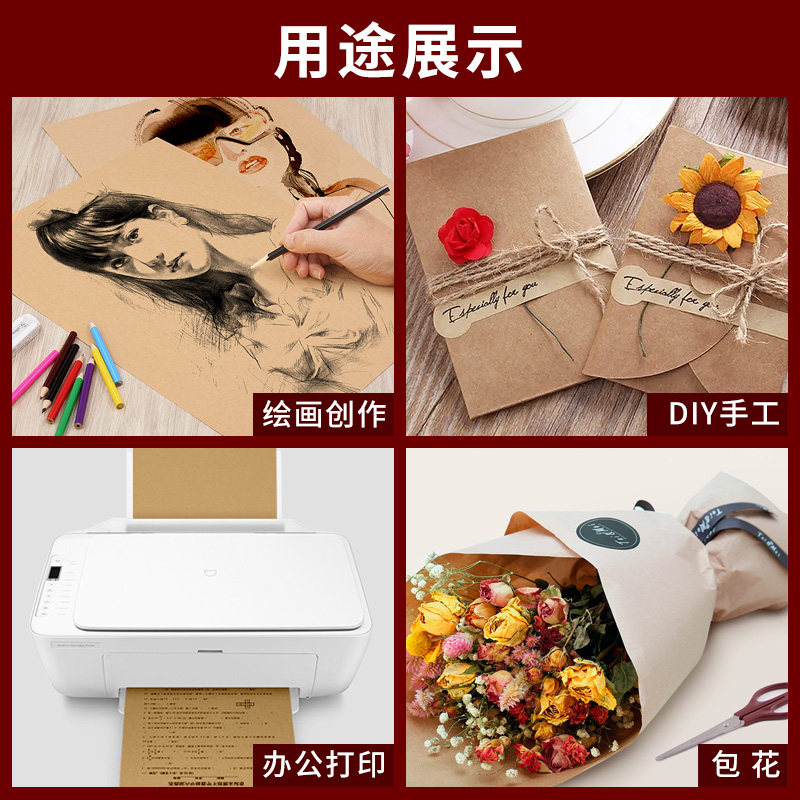 Kraft Paper a4 Cardboard Yellow Leather Sketching Paper Hard Cardboard Children Handmade DIY Binding Cover Paper Color Lead Paper Financial Warrant Drawing Special 8k16 Open a3A54k Fine Arts Kraft Paper-Taob