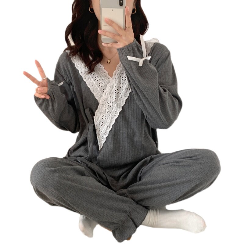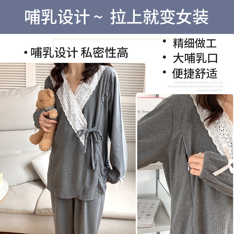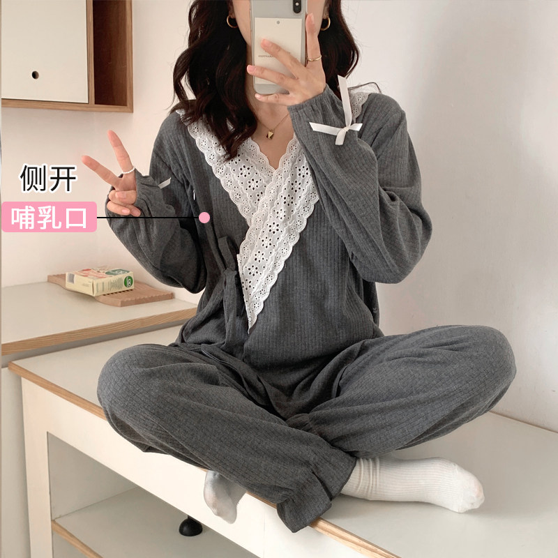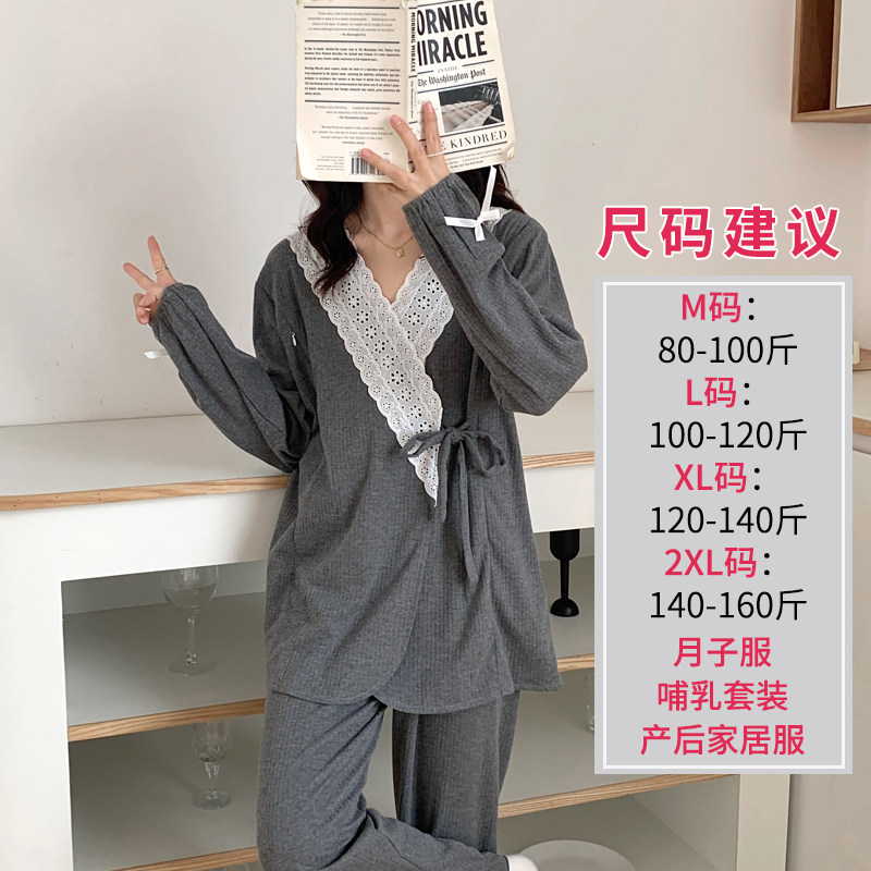 2022 Spring new and lace lace lunar sub-clothes for spring and autumn slim down pyjamas breastfeeding pregnant woman postpartum