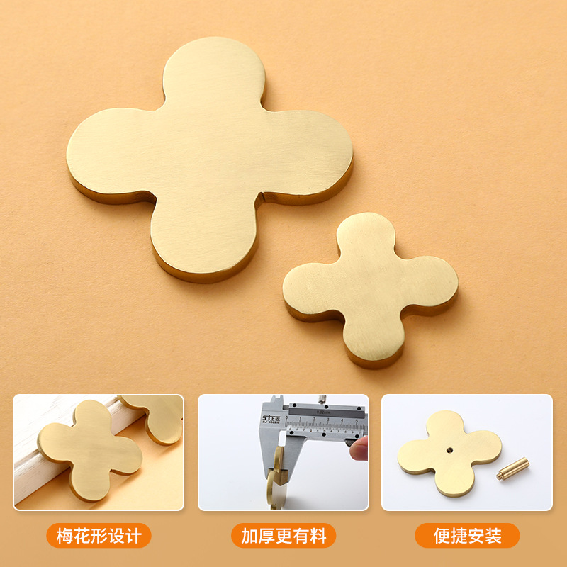 New Chinese plum single hole cabinet door All copper handle bedroom home wardrobe window brass gold drawer handle