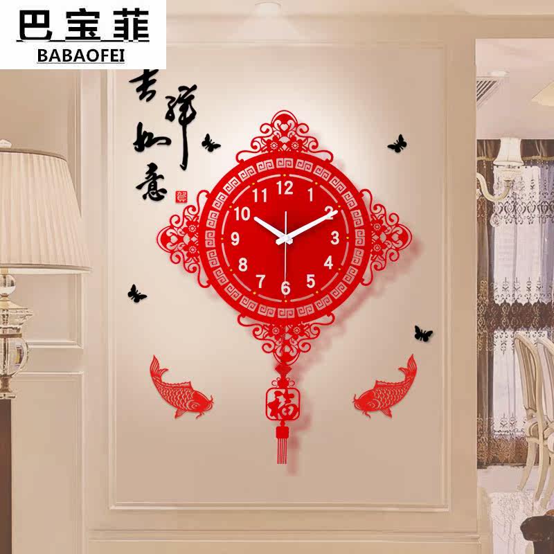 New Chinese hanging clock Living room Creative nighttime lighting and watches Home Fashion Atmosphere China Wind clock hanging wall Decorative Hanging Watch