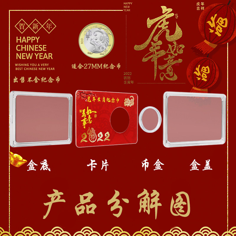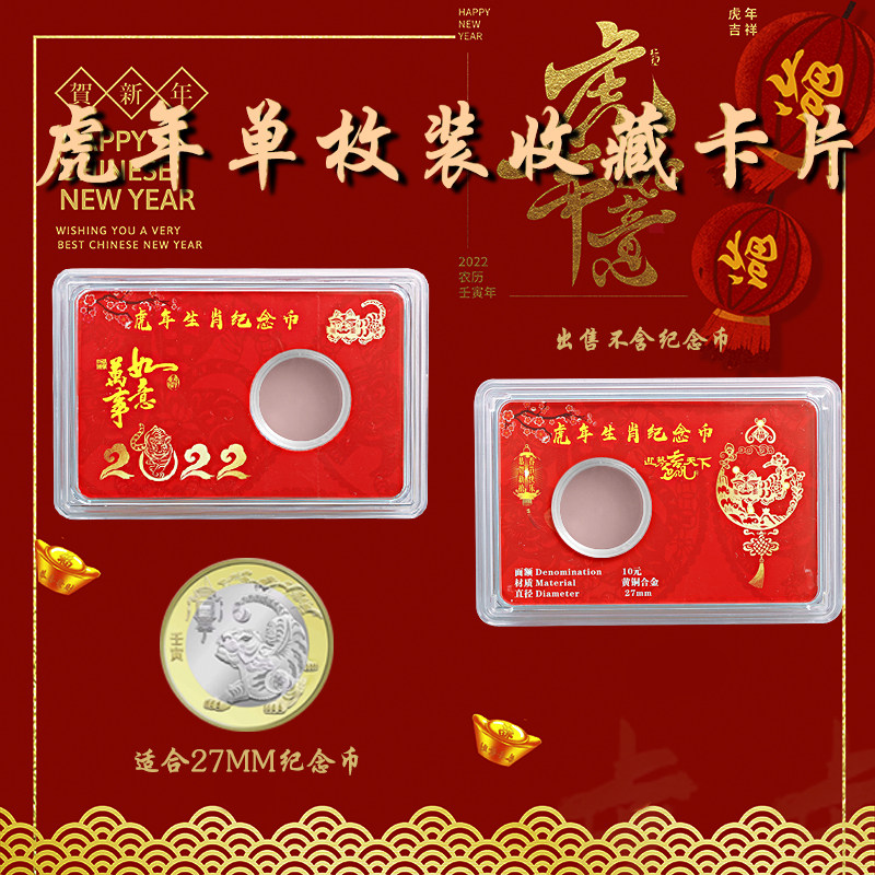 2022 Tiger Year Zodiac Commemorative Coin single Bright Color Card Collection Box 27mm10 Yuan Commemorative Coin Upscale Gift Box