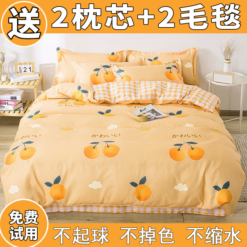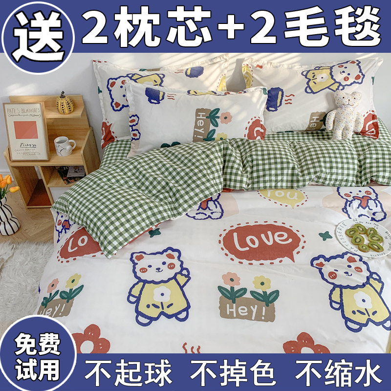 Four pieces of covered pure cotton 100 All cotton quilted sheet net red by single bed Bedding Quilted Student Dormitory Three Sets 4