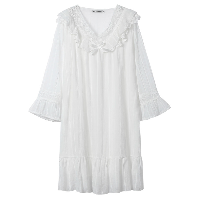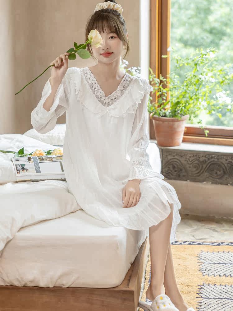 Princess Sleeping Dress Lady Spring Autumn Season New Pure Cotton Long Sleeve Cute Princess Wind Net Red Warm Elf The Same White Pyjamas