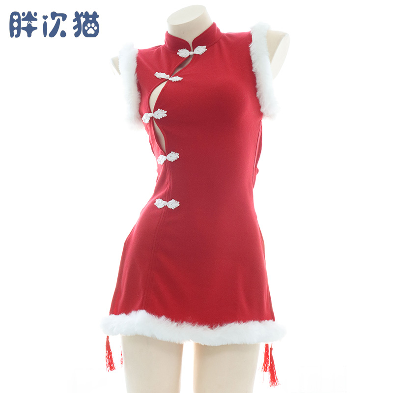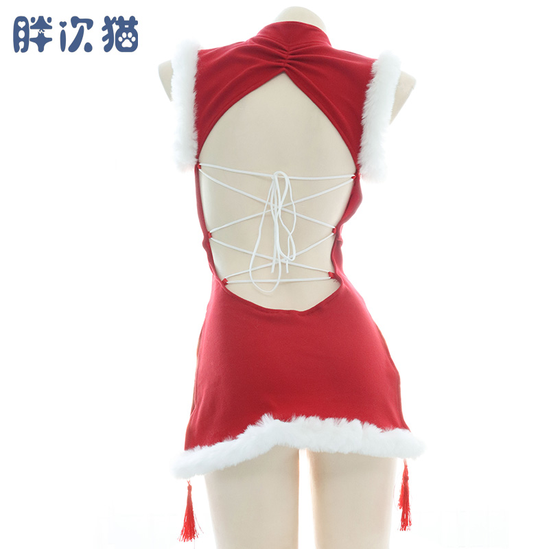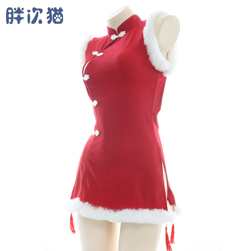Red plush qipao gown wardrobes sexy dress with dress and back carefully machine gift sleeping dress pyjamas 2022 new pint-Taobao