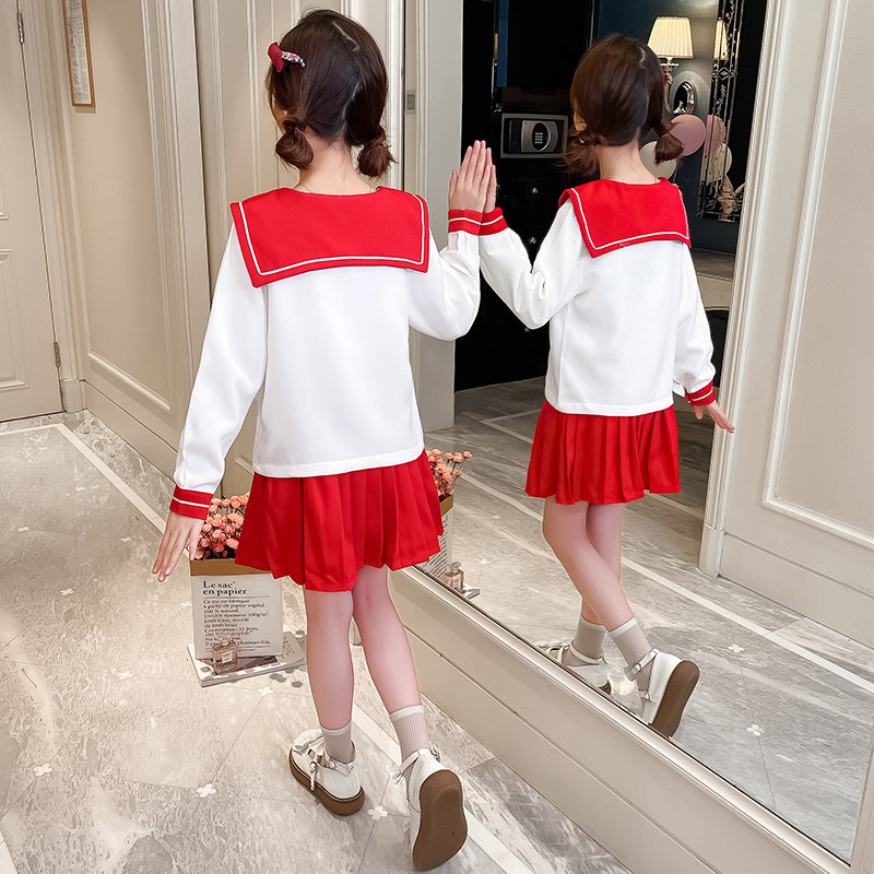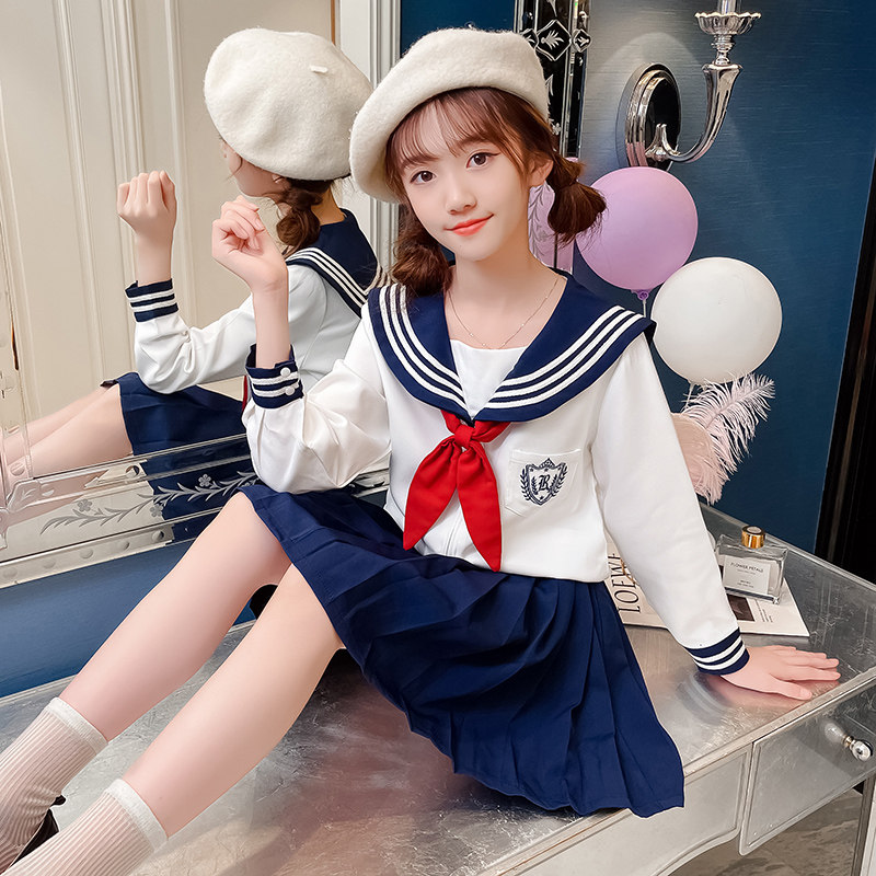jk suit girl's genuine long sleeve sailor clothes children spring autumn college wind two sets elementary school students uniforms thyme dress