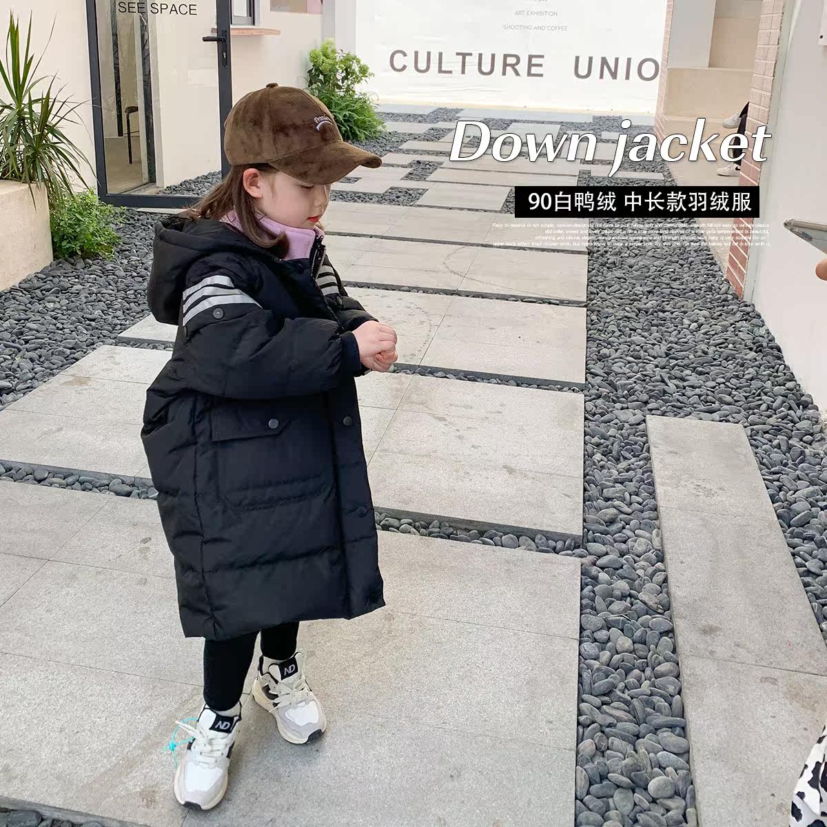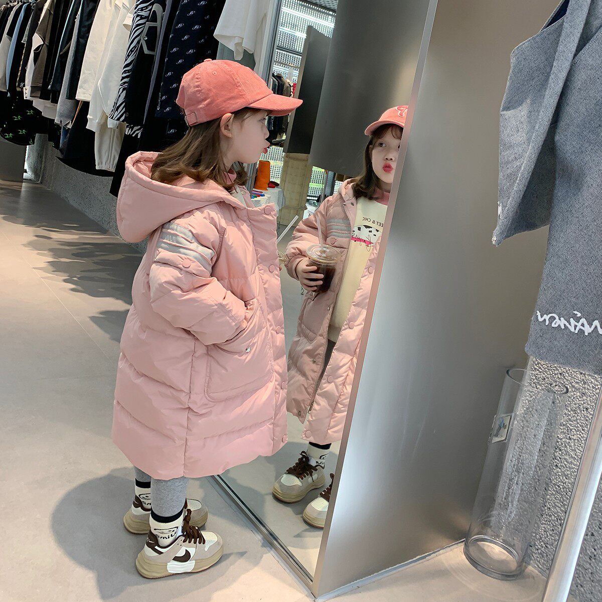 Foam home Custom children's clothing 2021 new girls long version of duvet clothes Children's foreign winter dress baby Han version jacket