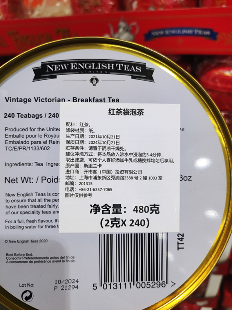 Shanghai Open City Guest Costco Sri Lankan English-style Breakfast Black Tea Bag Tea 480g (2gx240 bag)