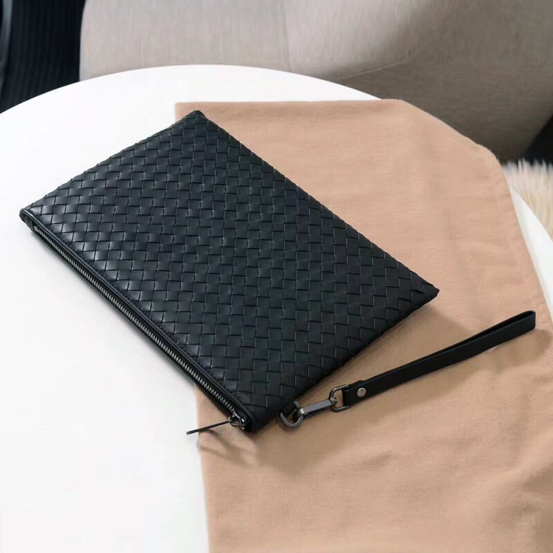 Korean version Youth new knitted handbag male cross section casual zipped hand grab bag Bull Leather Hand Grip Bag Fashion Tide Clip-Taobao