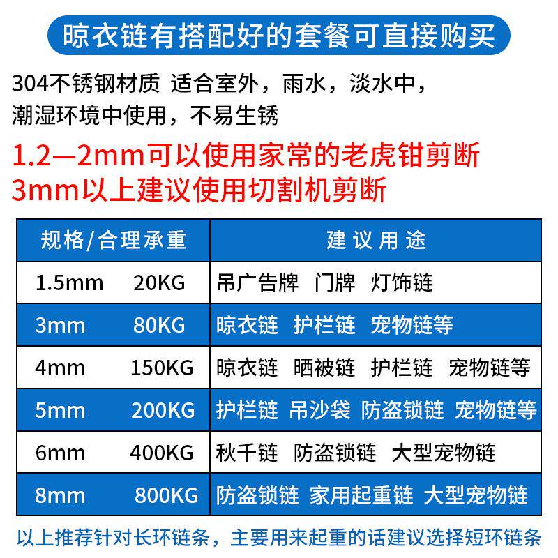 Stainless steel chain 304 seamless 304 stainless steel clothesline outdoor sunning rope non-slip drying clothes hanging up for rain