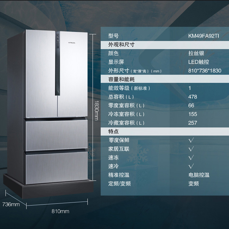 Siemens flagship zero fresh breast milk storage frost-free multi-door French refrigerator KM49FA92TI