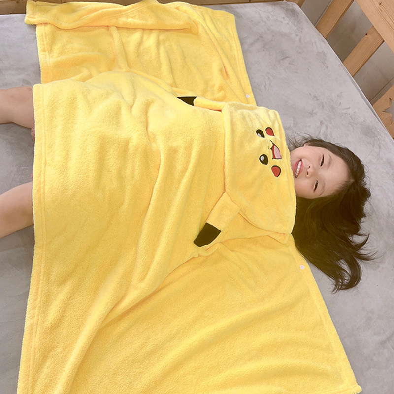 Pikachu children bath towels with hat baby can wear style bathrobe newborn baby wool towels are enlarged to thicken hair