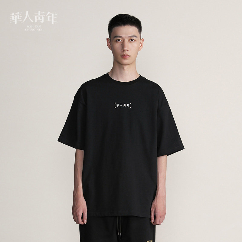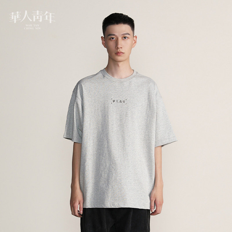 Chinese youth LOGO foundation short sleeves men and women pure cotton pure color relaxation country Tide Card Lovers Round the T-shirt Summer