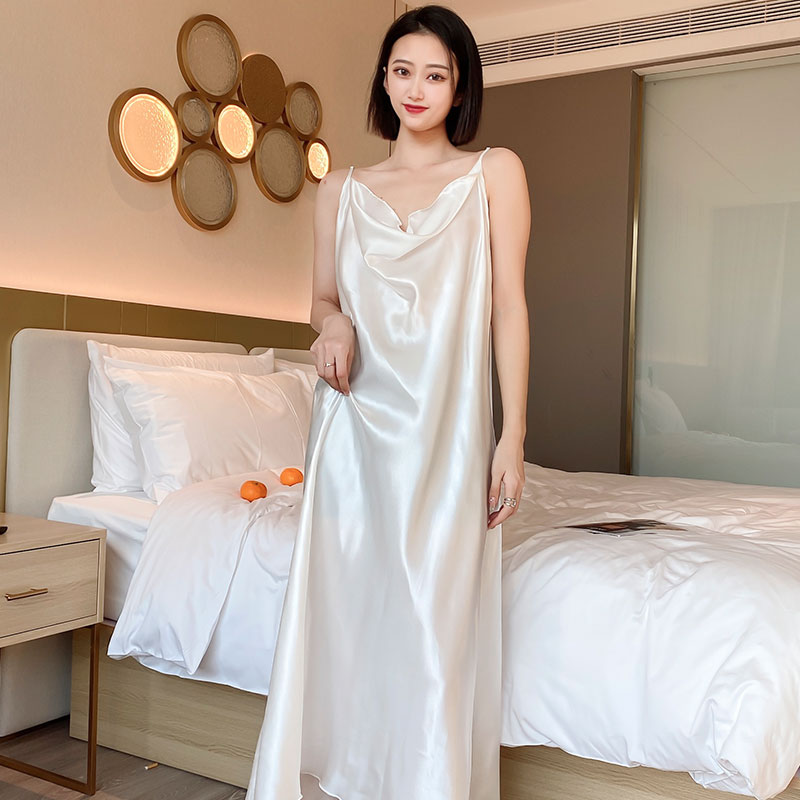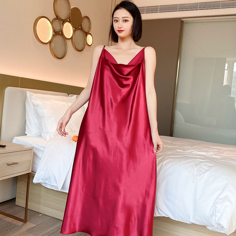 Ice silk large size suspender nightdress women's summer thin section loose sexy simulation silk plus fertilizer to increase home skirt 200 catties