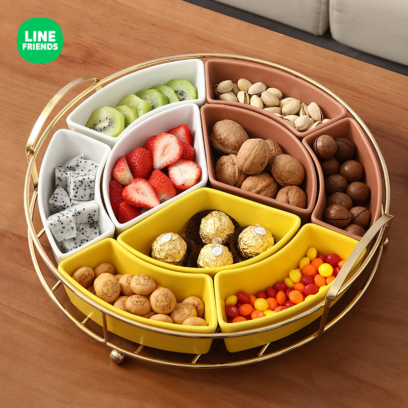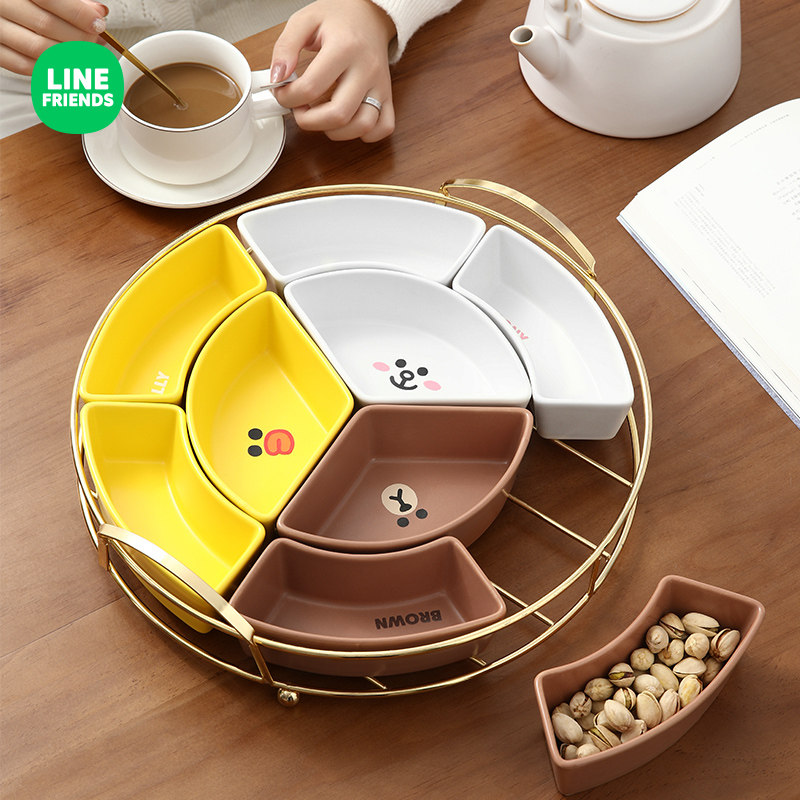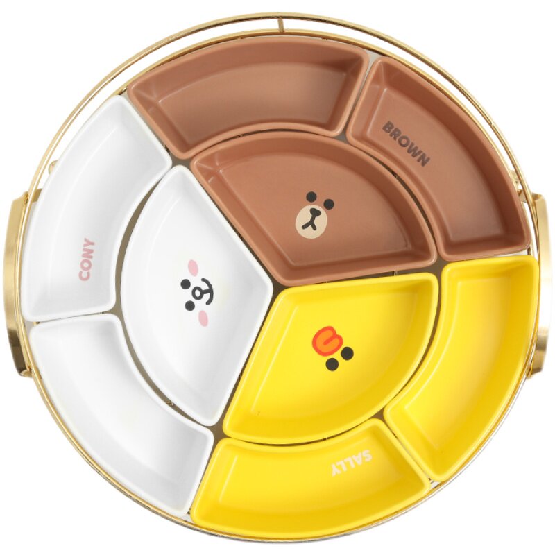 LINE Brown bear cartoon ceramic reunion platter tableware combination Chinese New Year round table plate set snack fruit plate