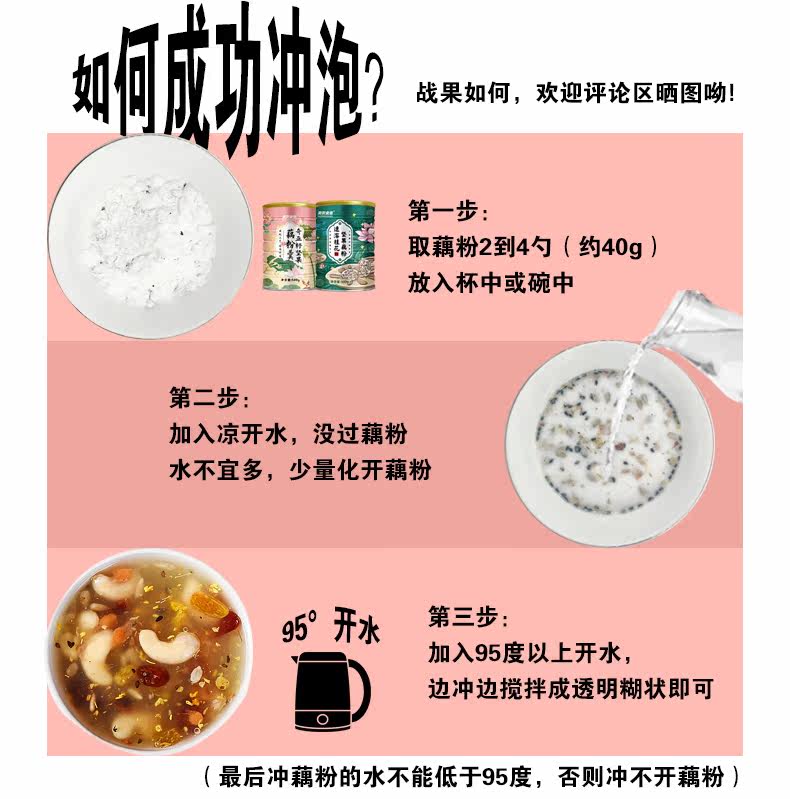 Pure lotus root starch, glucose, edible starch, potato starch, red jujube powder, malt glutinous rice flour, edible spices, etc.