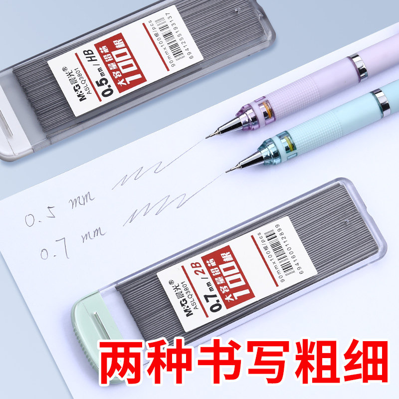 Morning light automatic lead refill 0 5 not easy to break large capacity automatic pen lead core 2-0 7 automatic pencil refill elementary students special 2b hb automatic pencil lead core constant core active pen lead core