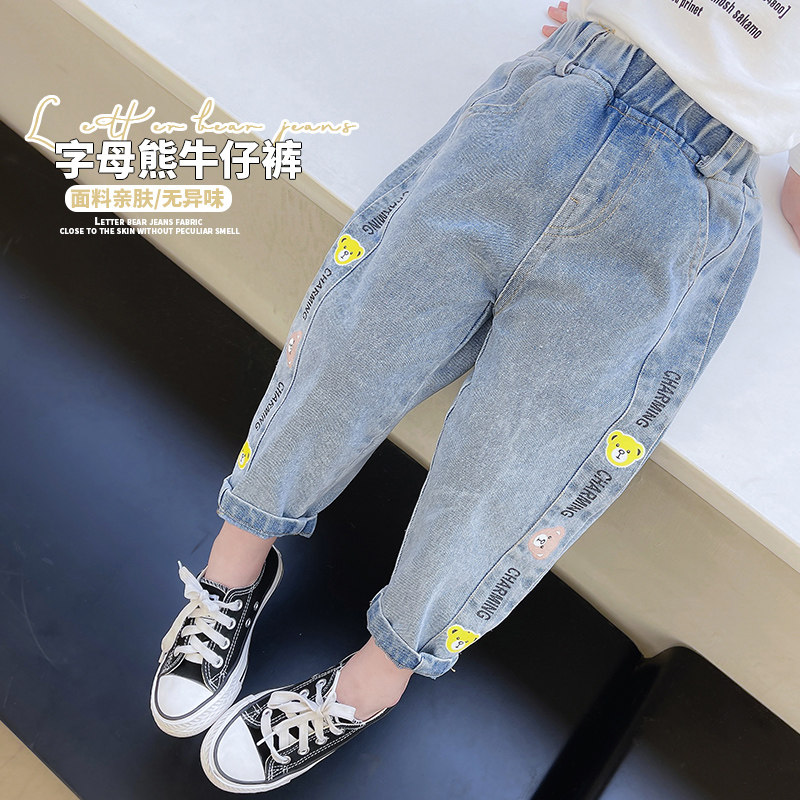 Girls' spring clothes jeans 2022 new baby girl's western style spring outer wear trousers children's loose casual pants trend