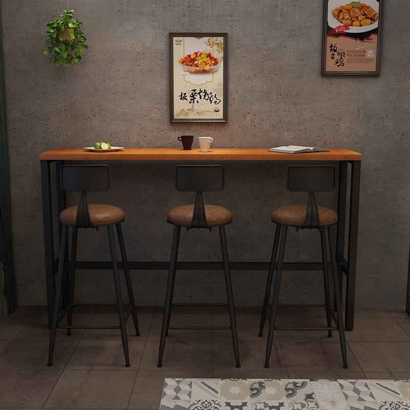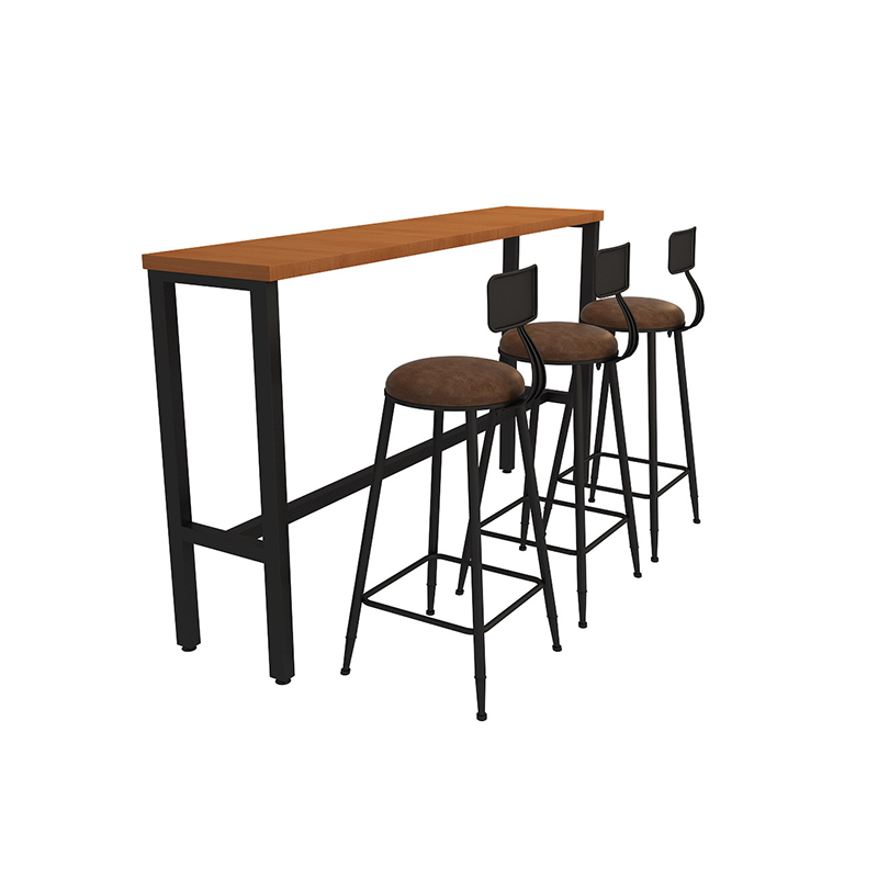 American iron art solid wood bar table milk tea shop leaning against wall bar retro high foot table and chairs combined strip narrow high table